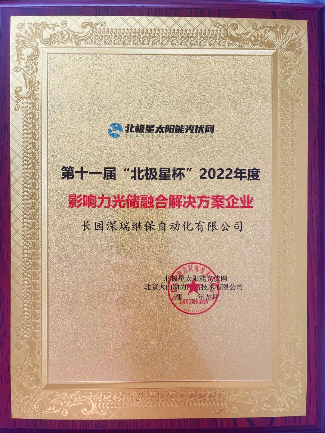 9月23日,“携光而行·领跑零碳”2022年光伏新时代论坛暨第十一届‘北极星杯’光伏影响力品牌评选颁奖典礼在江苏南京完美落幕。来自光伏行业权威专家、光伏产业链各环节优秀企业代表等百余位来宾欢聚一堂,共襄盛举。星空xingkong深瑞继保自动化有限公司(以下简称“星空xingkong深瑞”)受邀出席,再度荣获“影响力光储融合解决方案企业”、“影响力特色光伏应用项目案例企业” 两大奖项。