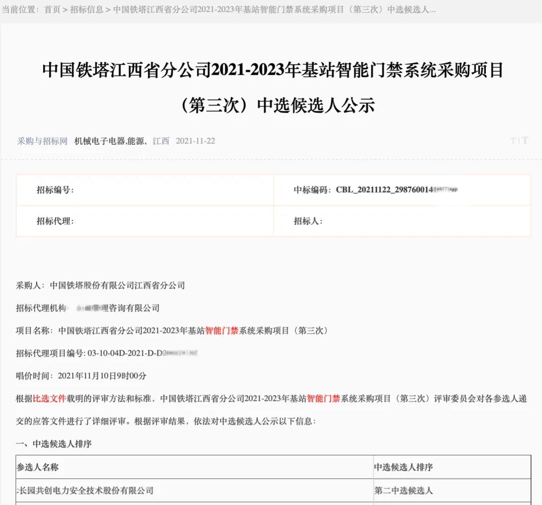 本次中标安徽、江西铁塔智能⻔禁项⽬,体现了客⼾对⻓园共创在通信智能运维领域创新能⼒的肯定,再次体现了客⼾对⻓园共创产品及服务的认可。未来,⻓园共创将持续创新突破,加强企业竞争⼒,助⼒⾏业和⾃⾝⾼质量发展。